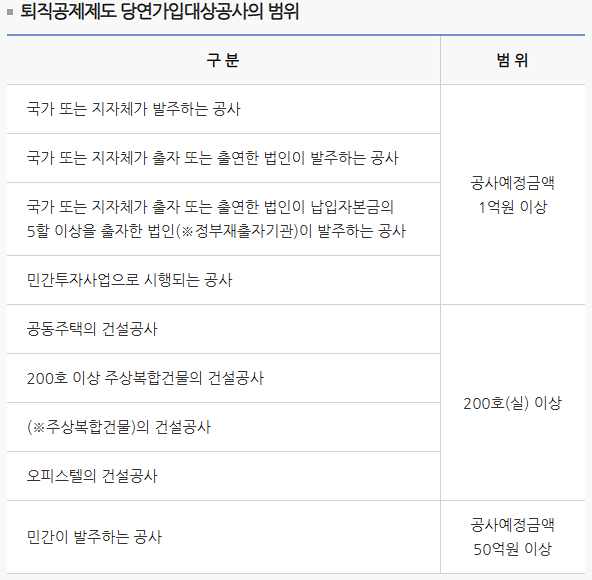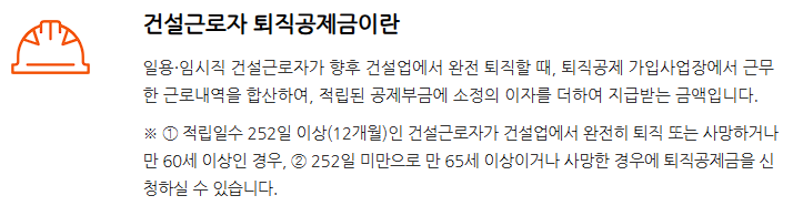 | 퇴직 요건 | 최근 일정 기간 동안 건설 현장 근무 이력이 있어야 함 |