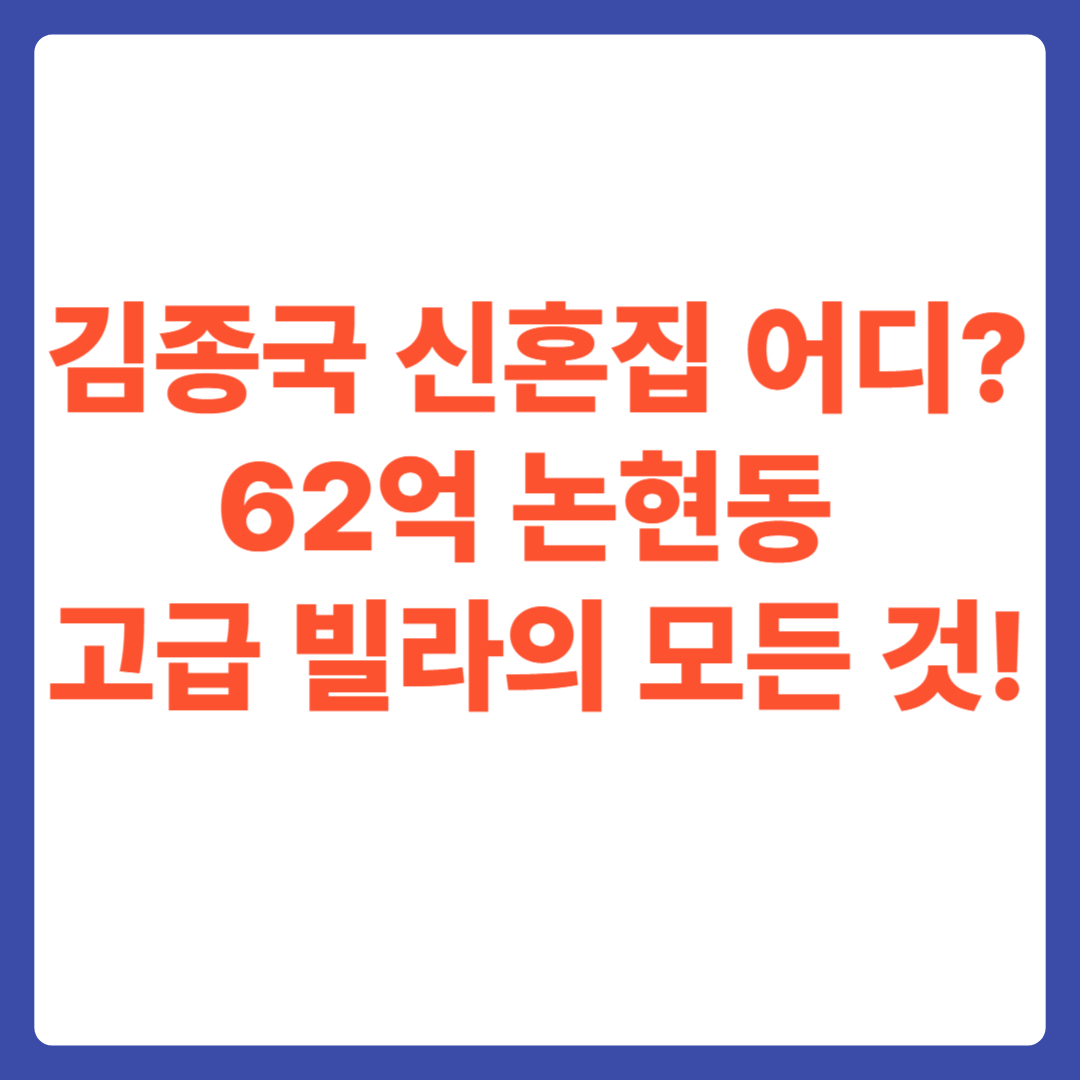 김종국 신혼집 어디? 62억 논현동 고급 빌라의 모든 것!