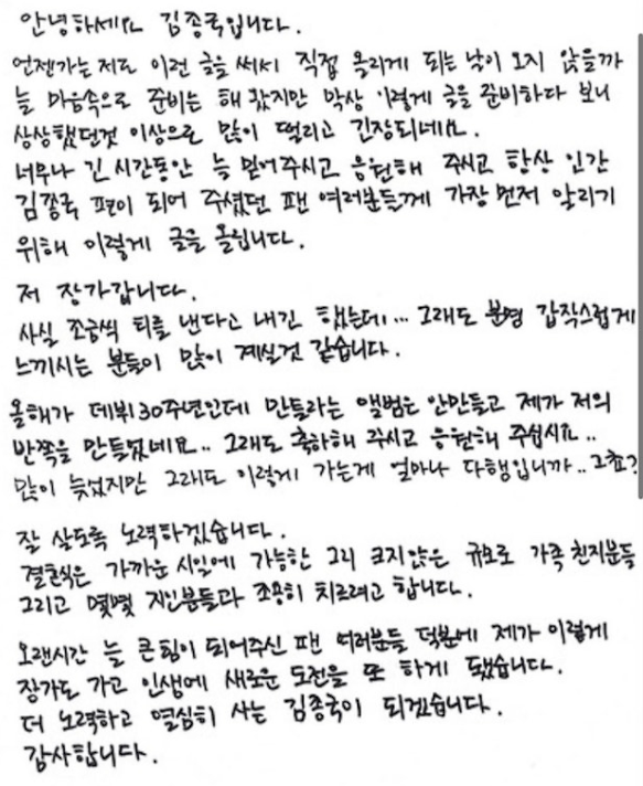 1. 김종국 “장가갑니다”… 팬카페로 직접 밝힌 결혼