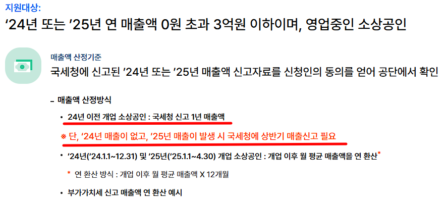 | 연 매출 | 0원 초과 ~ 3억 원 이하 (’24 또는 ’25년 기준) |
